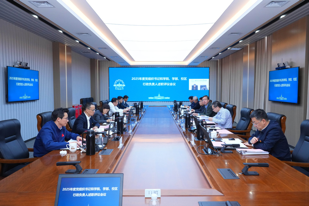 12月22日,在2025年度党组织书记和学院、学部、校区行政负责人述职评议会议上,9名基层党委书记和8名学院院长现场述职,总结成绩、盘点差距、分析问题,向学校交出年度“答卷”。校党委书记陈杰、校长韩杰才分别对现场述职的同志进行逐一点评,并对下一阶段重点工作进行部署。