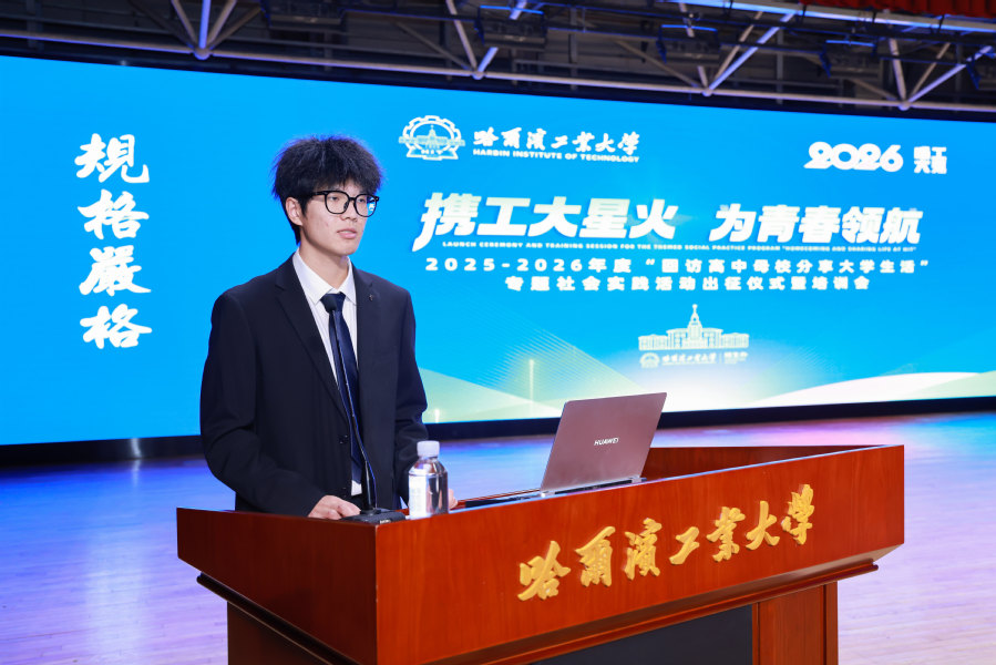 沈毅指出,哈工大始终与国家和民族的发展同频共振,始终坚守为党育人、为国育才初心使命。近年来,学校通过持续深化人才培养改革,全方位助力学子成长成才,成为优秀学子向往的“梦中情校”。希望参与此次社会实践的学子做真诚的“分享者”,以学长的角度并结合亲身经历分享交流学习经验、成长感悟;做合格的“代言人”,对外展示哈工大的良好形象和哈工大学子昂扬向上的精神面貌;做有心的“播种人”,在讲述学校辉煌历史与硬核实力的同时,传递哈工大人爱国奉献、追求卓越的价值追求,在学弟学妹心中播下科学报国、立志成才的种子。