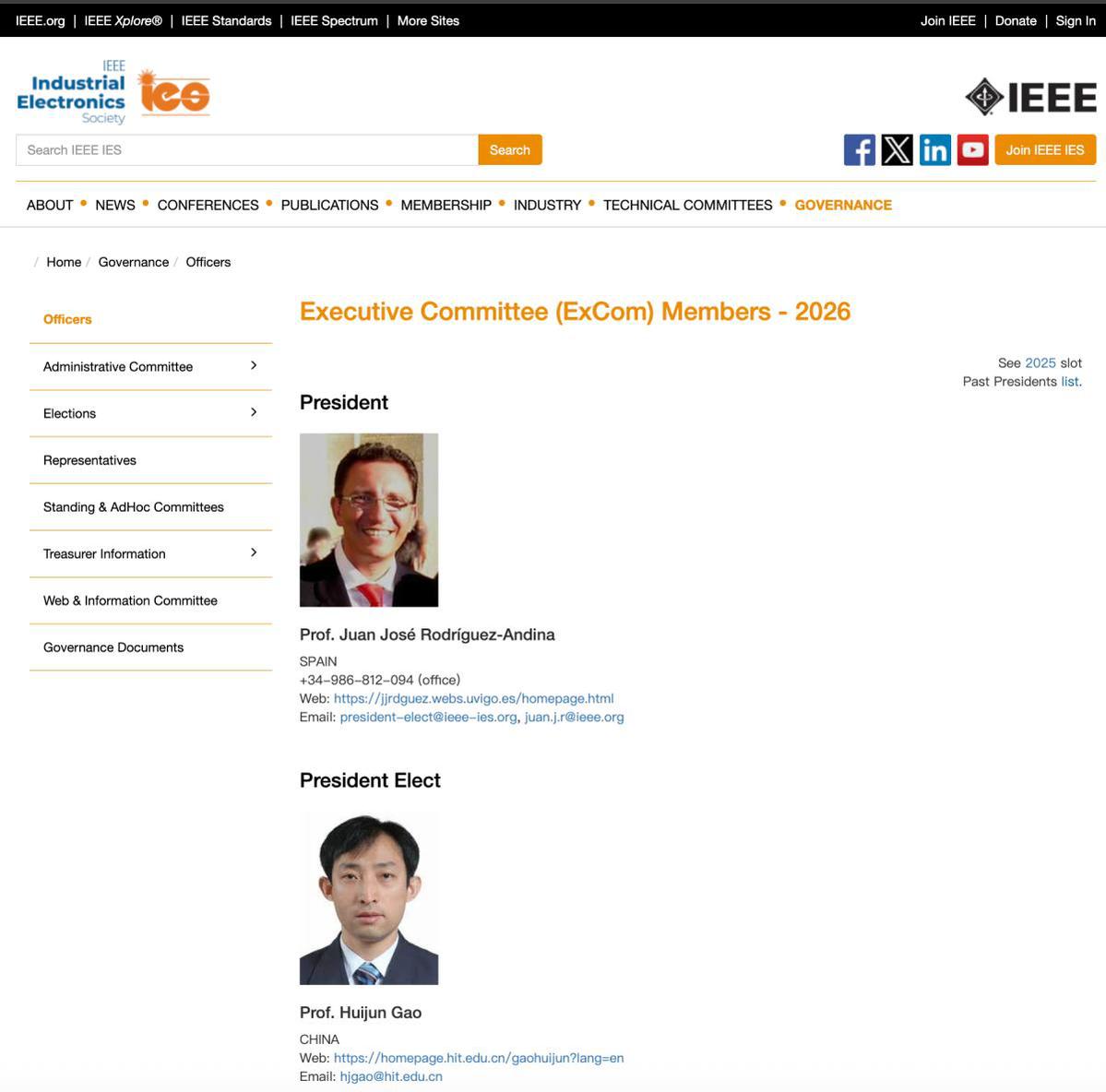 哈工大高会军教授当选IEEE工业电子学会候任主席