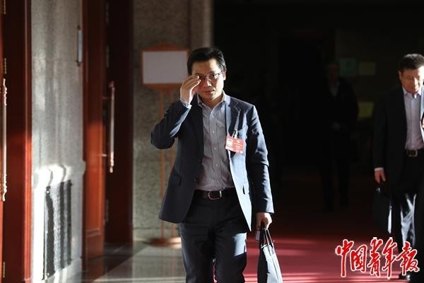 3月9日,北京会议中心,全国政协十四届四次会议小组会结束后,全国政协委员、哈尔滨工业大学校长助理吴立刚走出会场。今年全国两会,他就人工智能与教育融合发展相关主题提出建议。中青报·中青网记者 陈剑/摄