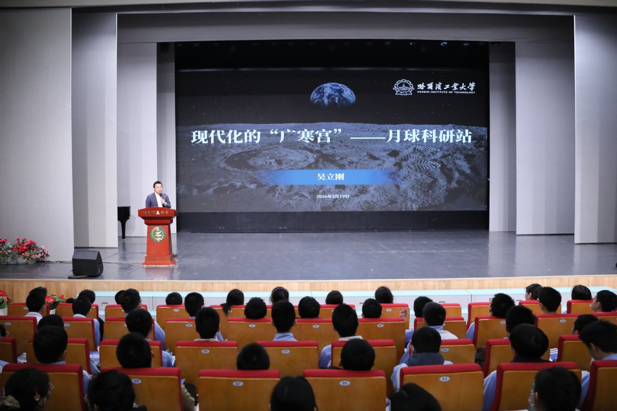 校长助理吴立刚以《现代化的“广寒宫”——月球科研站》为题面向学子作科普报告,系统介绍了我国探月工程的未来规划、月球科研站建设和学校在相关领域的前沿探索等内容。