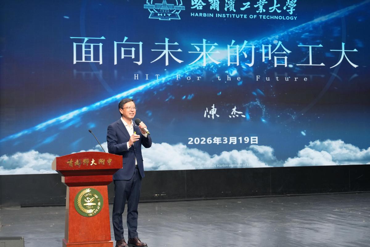 哈工大全媒体(商艳凯 叶楠/文 郭金良/图)3月19日,校党委书记陈杰院士带队走访首都师范大学附属中学(简称“首都师大附中”),面向高中学子作报告,并与中学负责人、高三学生和家长代表座谈交流,共话大中衔接拔尖创新人才培养新路径,勉励青年学子“勇担尖兵使命,在服务强国建设、民族复兴征程中绽放青春光彩”。首都师大附中党委书记、教育集团总校长沈杰,首都师大附中党委副书记、校长王春凯,副校长梁宇学,党委副书记李斌,副校长杜君毅、杨森林等全体校领导,我校校长助理吴立刚出席相关活动。
