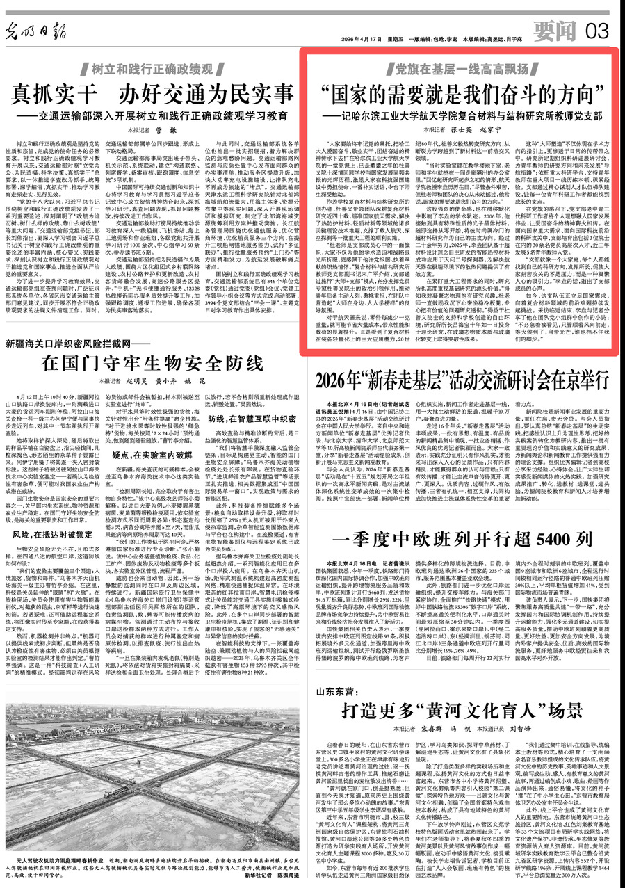 《光明日报》报道哈工大航天学院复合材料与结构研究所教师党支部:“国家的需要就是我们奋斗的方向”