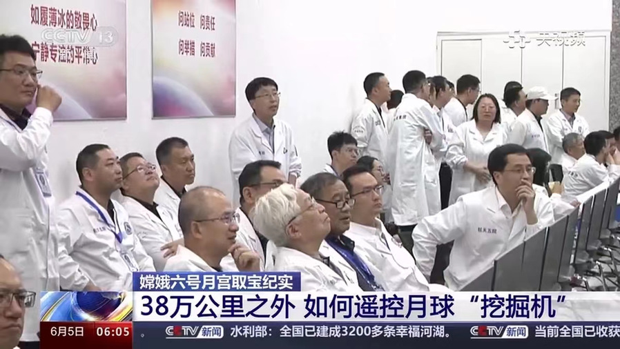 邓宗全(前排左三)在嫦娥六号月面采样地面支持中心