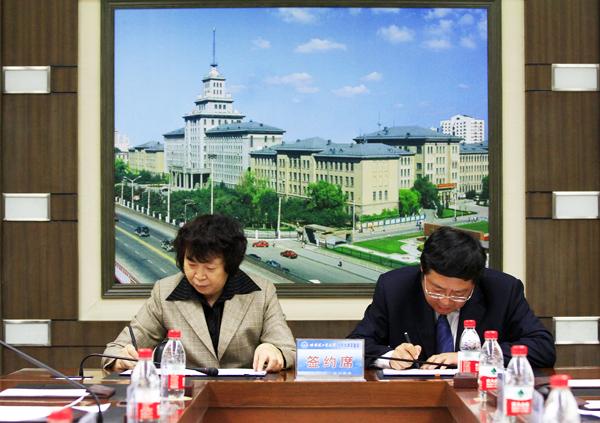 仪式由基金会秘书长郑世先主持。会上,基金会副理事长、校友总会副会长崔国兰代表学校与济南城建集团有限公司签订了捐赠协议。