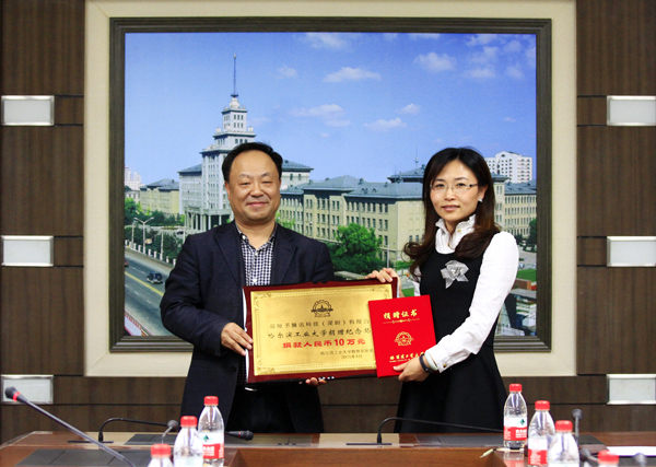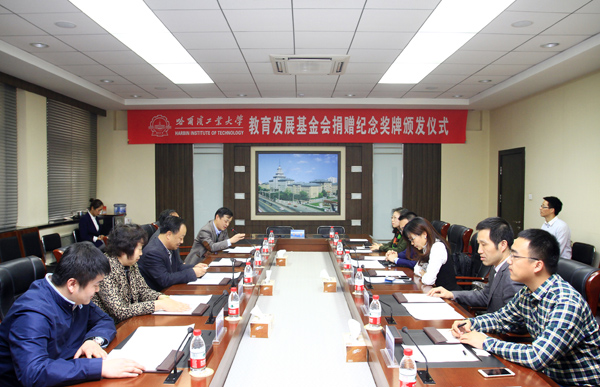 哈工大报讯(兰锐 文/图)4月15日,哈工大教育发展基金会纪念奖牌颁发仪式在校举行。腾讯科技(深圳)有限公司向我校教育发展基金会捐赠10万元,用于软件学院腾讯创新俱乐部学生活动。基金会副理事长、副校长郭斌为捐赠企业代表颁发了捐赠纪念奖牌和证书。