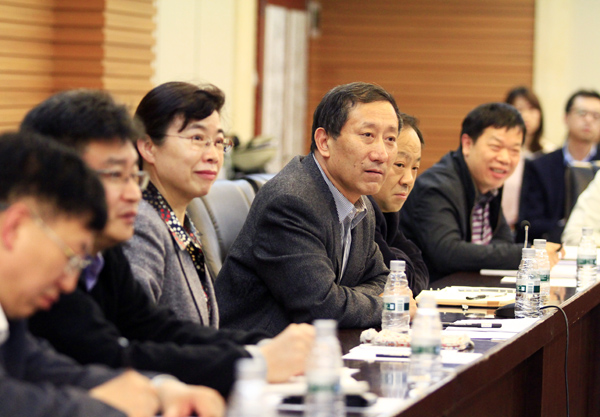 副校长丁雪梅、郭斌、安实,相关部门负责人出席座谈会。