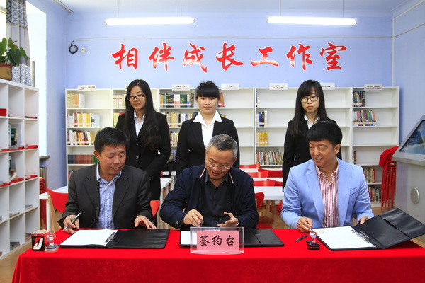 仪式上,校长助理、机电学院院长刘宏,图书馆馆长张广玉,后勤工作处处长、后勤集团总经理张凤淼代表机电学院、图书馆、后勤集团签署了相伴成长图书室共建协议并分别讲话。学生工作部(处)部长邵兵等为图书馆捐赠的电子设备揭幕。相伴成长党员志愿服务岗志愿者代表进行了宣誓,保证认真做好志愿服务工作。