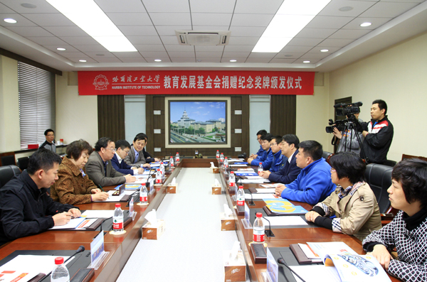 哈工大报讯(兰锐 文/图)5月13日,哈工大教育发展基金会纪念奖牌颁发仪式在行政楼616举行。领航石油化工(天津)有限公司向哈工大教育发展基金会捐赠100万元,用于化工学院学科建设、实验室建设及奖教金。副校长徐殿国为捐赠单位颁发了捐赠纪念奖牌、证书和杰出教育贡献奖牌。