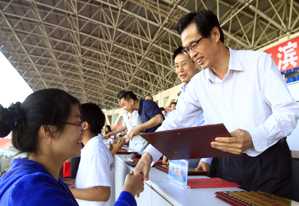 哈工大报讯(刘忠奎/文 冯健 兰锐 刘忠奎 张春晖/图)5月29日至30日,主题为“全民健身 逐梦扬威 团结拼搏 追求卓越”的第52届田径运动会举行。参赛运动员挑战极限、顽强拼搏,各项赛事捷报频传。校党委书记王树权,校纪委书记才巨金,校长助理彭远奎、甄良、刘宏出席开幕式,并为校“阳光体育运动”先进单位和校“十佳”运动员颁奖。