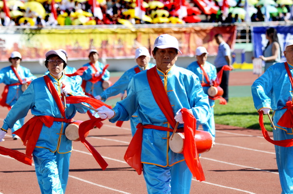 开幕式上,各基层党委、单位、团体代表队步伐整齐、精神饱满,依次走过主席台接受检阅。体育部及武术协会的太极拳教学汇报表演拉开了团体操表演的序幕。体育部教学汇报表演的第十套大众广播体操,校武术协会和基础学部武术分会表演的形意拳、老年大学学员献上的小苹果,或动作整齐划一、或气势如虹、或迅猛凌厉、或柔缓自然,博得了观众热烈的掌声。