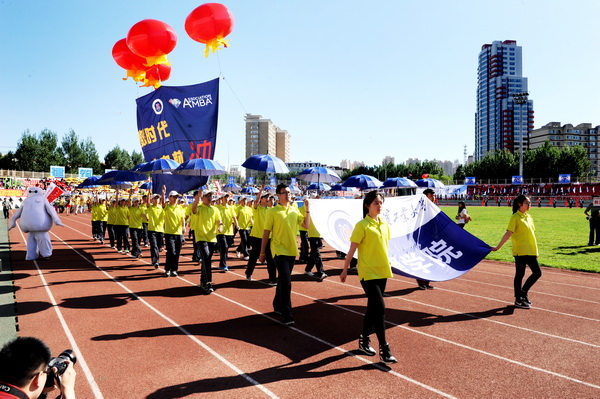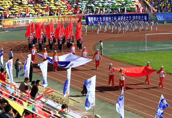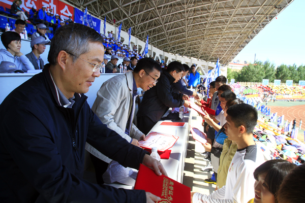 体育部主任王珂主持开幕式。才巨金在致辞中说,田径运动会是我校体育文化生活的重要组成部分,是运动员体育竞技水平和广大师生精神风貌的展示舞台,也是对我校体育工作开展情况的一次集中检阅。2014至2015年度,学校深入贯彻“全民健身计划”,积极倡导健康理念,成立了体育工作委员会,推出了“教职工健康文化建设年”等活动,营造了良好的体育文化氛围,增强了师生的健康意识,养成了运动的好习惯,为学校的事业发展注入了生机与活力。最后,他希望大家养成崇尚运动、参与健身、追求健康的文明生活方式,以更饱满的精力投身到学校全面深化改革和建设世界一流大学的宏伟事业中。