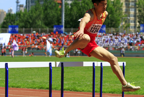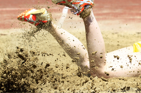 赛场上,运动健儿壮志凌云、挑战自我、各展风采。百米运动员如离弦的箭一样瞬间冲向终点;跳远运动员如俯冲直下的雄鹰,在空中跃出长长的一段距离;掷铅球运动员,携着力拔山河的气势,大吼一声,凌厉的转身与迅捷的出手,使铅球在空中划出一道优美的弧线后落向远处;跳高运动员身轻如燕,拔地而起,如鲤跃龙门,一个个高度不断被刷新;在万米决赛中,运动员你追我赶,互不相让。虽然步履如铅、呼吸急促、汗流浃背,但他们依然奋起拼搏,一圈又一圈地向着终点冲刺。跨栏运动员干脆利索的跨越、铁饼运动员的倾力一拨、标枪运动员的奋力一掷,无不诠释着奥林匹克精神。