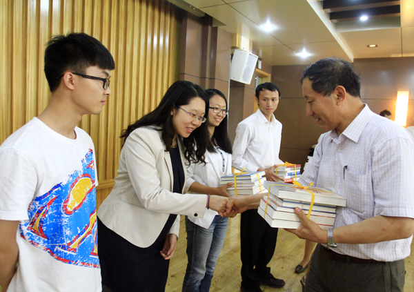 座谈会上,周玉代表学校向毕业生代表赠送了书籍,毕业生代表也向周玉送上了表达全体毕业生心意的礼物。