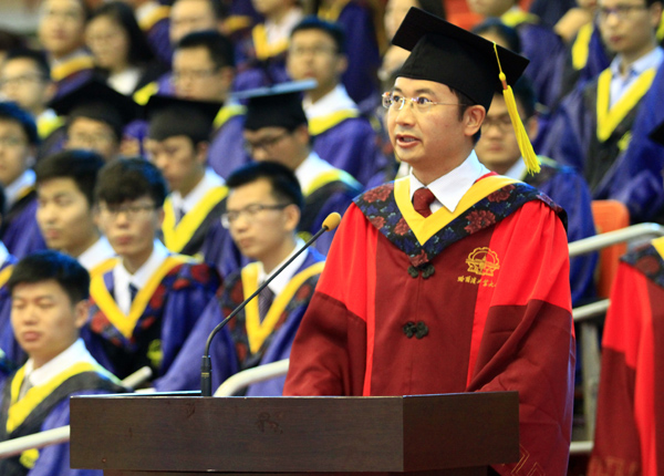 哈工大报讯(刘忠奎/文 冯健 兰锐/图)“寒暑更迭,每一份耕耘的辛苦,换来了今天收获的喜悦。今天,硕士生涯即将画上句号;明天,我们将带着哈工大精神的烙印,奔赴五湖四海,开启一段全新的人生。”7月10日上午,2015届硕士研究生毕业典礼暨学位授予仪式在体育馆举行。校长周玉出席毕业典礼并深情寄语莘莘学子。