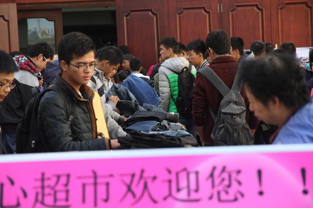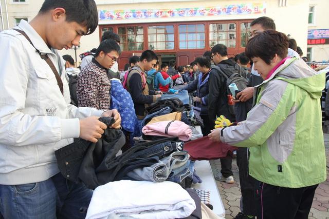 活动中,300余名大一新生仔细挑选着自己需要的物品,小书桌、书籍备受同学们青睐,一会儿就被领光。“这次活动很有意义,我找到了需要的书桌和书……感谢那些献爱心的人。”电气学院小王说。天气越来越冷,棉衣类的摊位前也聚满了人。“我挑了一件棉衣和一条裤子,冬天就不用买外套了,可以用节省下的钱多买一些专业资料。”来自航天学院的一名学生高兴地说。天气虽冷,工作人员热心地为同学们服务,并为他们送上了热乎乎的大麦茶。