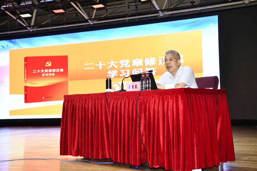 李清泉以透彻的理论阐释、生动的案例分析,从“深刻认识党章的重要地位和历史作用”“全面掌握二十大党章修改的主要内容”“准确把握学习党章的实践要求”3个维度,对《中国共产党章程(修正案)》进行了深入解读。