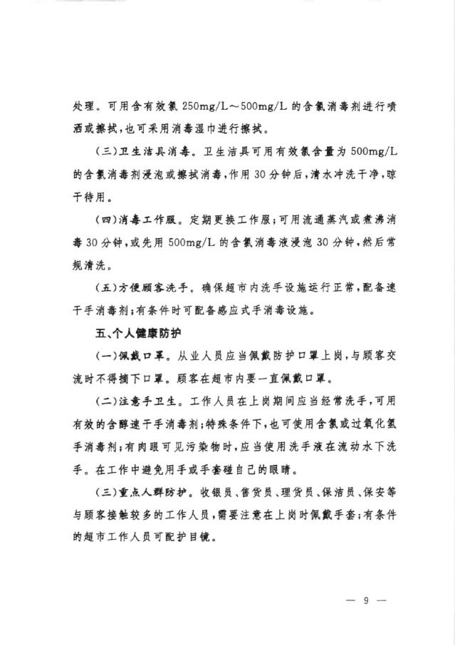 新型冠状病毒肺炎流行期间商场和超市卫生防护指南