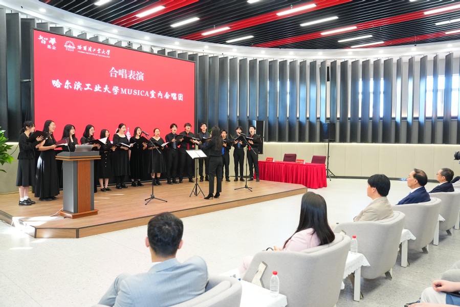 仪式上,双方签署捐赠协议。国际合唱联盟A级合唱团——哈工大MUSICA室内合唱团带来文艺演出。