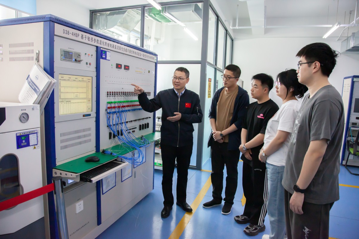 成果主要完成人叶雪荣教授(左一)指导团队成员科研攻关