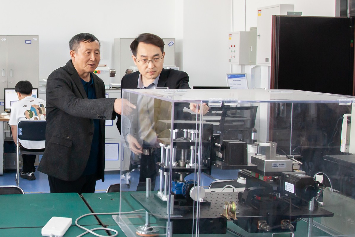 成果第一完成人翟国富教授(左一)与合作企业交流