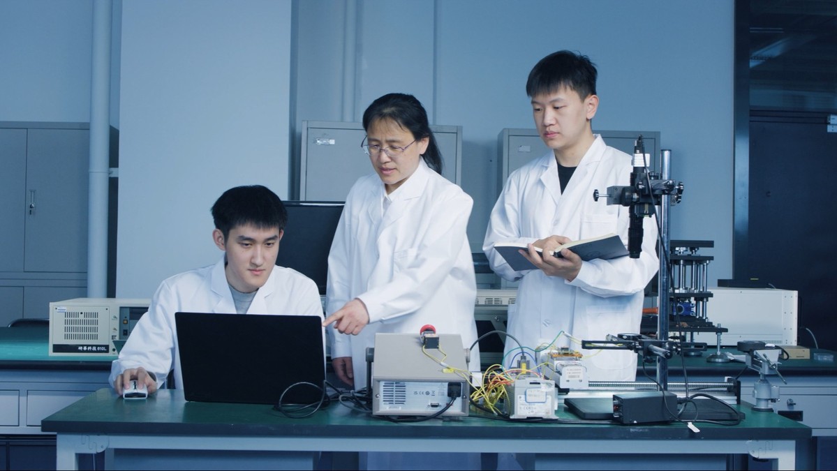 团队成员梁慧敏教授(中)指导学生科研攻关