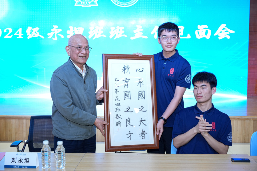 2024级学生为刘永坦院士送上了亲手书写的“心系国之大者、精育国之良才”书法作品。