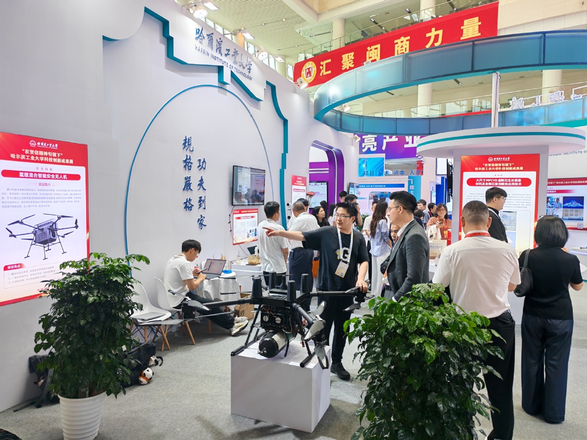 在哈工大展区,学校集中展示了特种环境作业机器人、氢锂混合智能安全无人机、新一代智能变色材料等13项技术成果,集中呈现了学校在人工智能与新材料领域的前沿突破与创新实践能力,同时设置线上展馆,通过线上线下多渠道宣传展示学校重点科研成果、重点项目(产品)、创新资源等。
