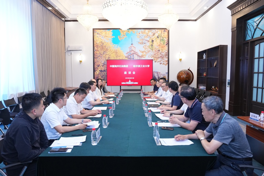 哈工大全媒体(梁英爽/文 辛然/图)中国海洋石油集团有限公司(以下简称“中国海油”)党组成员、副总经理俞进一行来校调研。校长韩杰才出席座谈会并讲话。常务副校长孙雪主持座谈会。