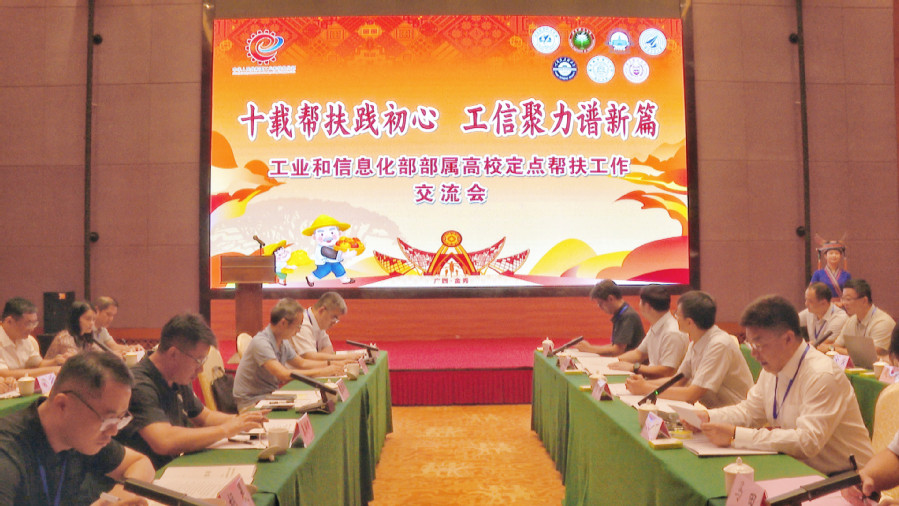 哈工大全媒体(梁英爽 文/图)7月5日,由工业和信息化部规划司(部定点帮扶办)指导、哈工大主办的“十载帮扶践初心 工信聚力谱新篇”工业和信息化部部属高校定点帮扶工作交流会在广西壮族自治区来宾市金秀瑶族自治县举行,进一步总结推广帮扶经验做法,共探赋能乡村全面振兴新举措、新路径。工业和信息化部规划司(部定点帮扶办)综合处处长、一级调研员刘博讲话。广西壮族自治区来宾市金秀瑶族自治县委书记谭玉成致辞。校党委常务副书记安实主持会议。