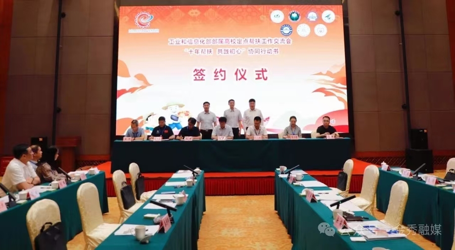 会上,部属高校代表签署《“十年帮扶 共践初心”协同行动书》。部属高校将在社会实践、科普教育、工信讲堂、产业提升、爱心帮扶等领域开展深度合作。