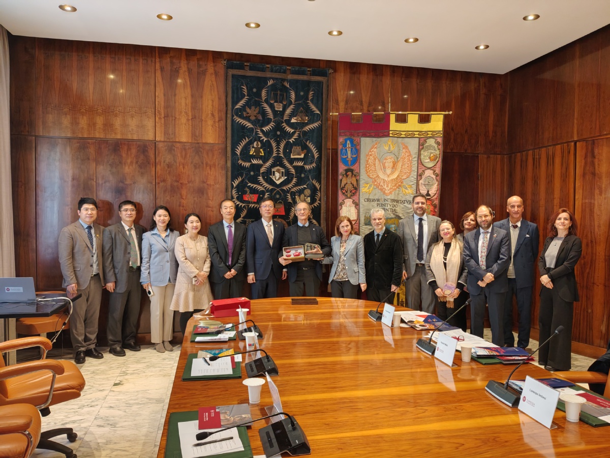 12月11日上午,陈杰与罗马第一大学常务副校长朱塞佩·奇卡罗内(Giuseppe Ciccarone)举行会谈。双方介绍了各自学校的总体情况,并围绕自然科学、人文社科、信息工程、法学、建筑等学科领域,在学生联合培养、人文交流与科研合作等方面达成广泛共识。双方一致同意,将通过持续深入的协作,共同应对全球性挑战,着力培养具有国际视野与创新能力的高层次人才,推动中意高等教育合作迈向互利共赢的新阶段。中国驻意使馆教育参赞于兴国出席会谈交流。访问期间,陈杰还与罗马第一大学中国事务副校长、罗马法首席教授奥利维耶罗·迪利贝托(Oliviero Diliberto)会面,双方就法学学科的创新发展进行了专题交流。