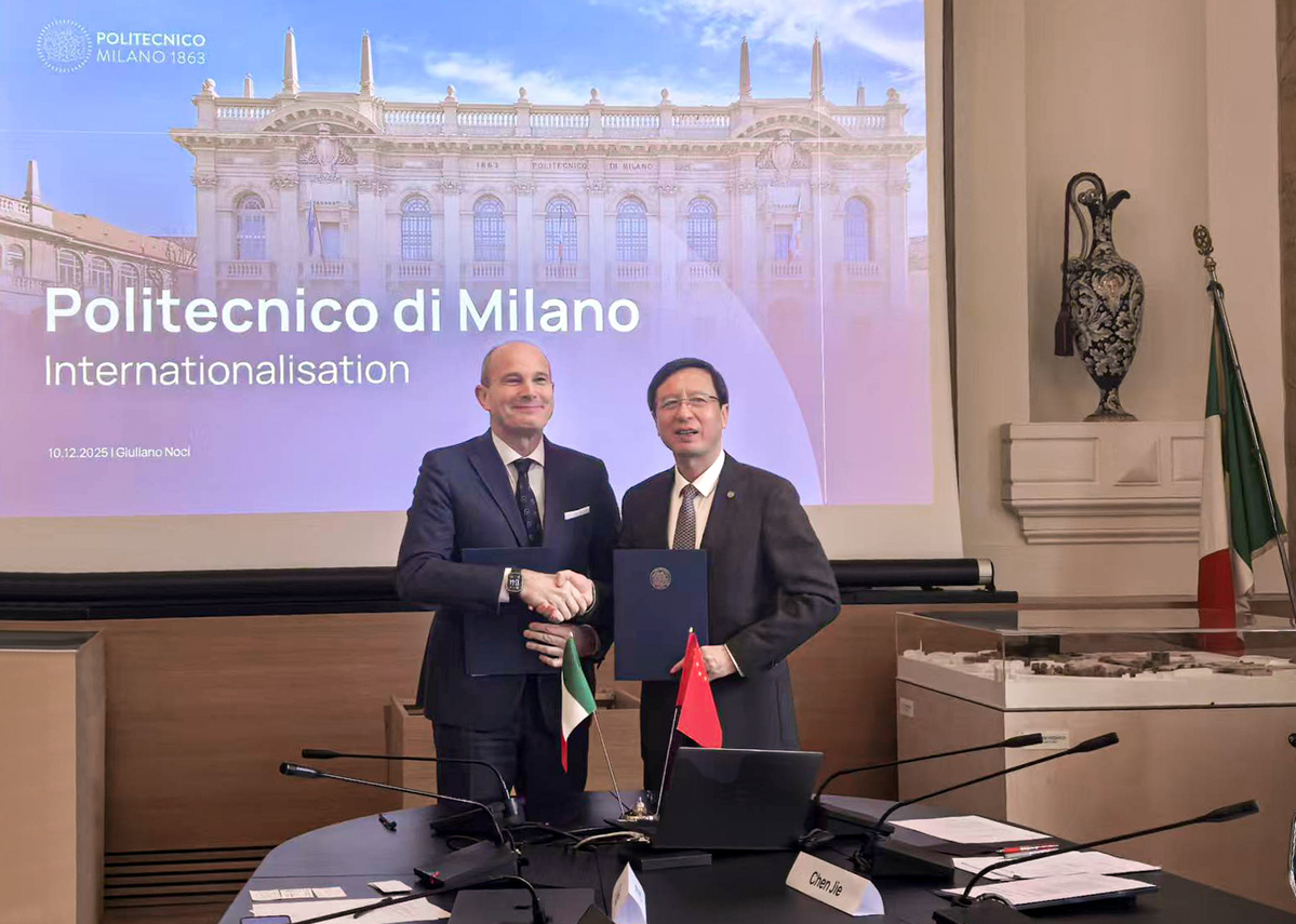 12月10日上午,陈杰与米兰理工大学副校长朱利亚诺·诺奇(Giuliano Noci)会谈交流,签署交换生项目协议。陈杰介绍了哈工大在学科建设、人才培养、科学研究等方面的特色优势,希望双方在建筑、设计、机电、土木、农业工程等领域深化战略合作,共同为中意高校协同发展注入新动能。诺奇介绍了米兰理工大学相关情况,表示将与哈工大在学生培养、人文交流、共建课程等领域凝聚合力,共同打造意中教育合作新典范。