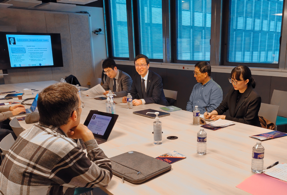 12月12日下午,陈杰与索邦大学数学学院院长萨米·穆斯塔法教授(Sami Mustapha)、法兰西科学院院士奥利维尔·皮罗诺(Olivier Pironneau)一行会谈交流。双方就数学学科发展建设及国际化发展趋势进行深入探讨,并表示将围绕学生培养项目建设持续深化合作,推动数学与人工智能、工程科学等交叉领域的科研合作,共建高层次数学人才培养机制,持续拓展教师互访与学术交流平台,携手推动中法教育共同发展。