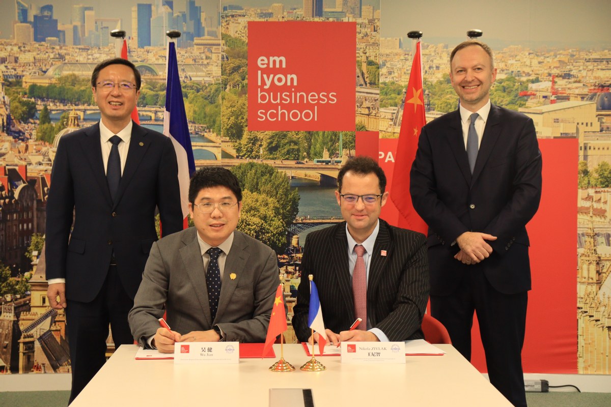 12月12日上午,陈杰与里昂商学院常务副校长尼古拉·贝如(Nicolas Péjout)、副校长马克·史密斯(Mark Smith )在巴黎校区会谈交流,签署学术合作谅解备忘录。双方就深化两校在数据科学、人工智能等领域的战略合作,以及拓展优势学科交叉融合达成高度共识,将创新本硕贯通与产教融合培养模式,提升两校在全球学术与创新领域的影响力,服务中法战略产业发展需求。