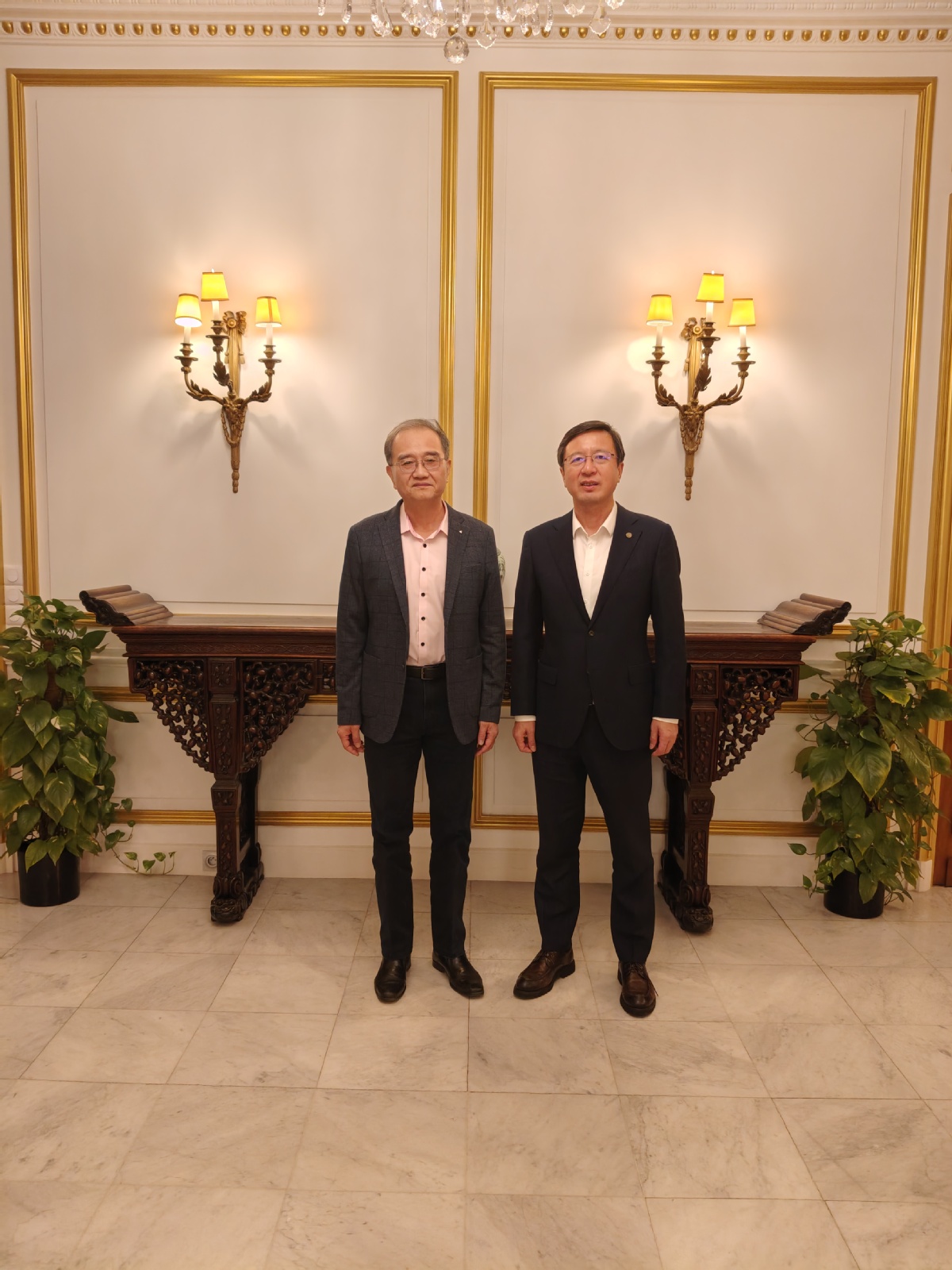 陈杰与驻法大使邓励会谈交流,双方围绕中法高等教育与科技创新合作深入交换意见,一致认为中法两国在教育、科技和人文等领域合作基础坚实、前景广阔。正值中法关系继往开来的关键时刻,两国元首为双边关系未来发展擘画了崭新蓝图,两国高校交流合作迎来新的发展机遇。陈杰表示,近年来哈工大与法国一批顶尖高校及国际组织建立了密切合作关系,学校将充分发挥自身优势,与法国高校、科研机构携手共进,在人才培养、科研协同与人文交流等领域拓展合作,为推动全球教育发展贡献力量。邓励表示,使馆将在政策沟通、资源对接和平台搭建等方面积极支持哈工大深化对法合作,共同推动中法高校合作取得更多实质性成果。