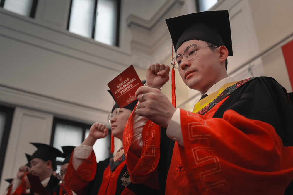 伴随着悠扬的乐声,4名博士毕业生以诗朗诵《光荣的追寻》,致敬哈工大“八百壮士”。“不负时代!不负韶华!不负母校!奋力书写为中国式现代化挺膺担当的青春篇章!”在毕业生代表的领誓下,全体毕业生进行青春宣誓。