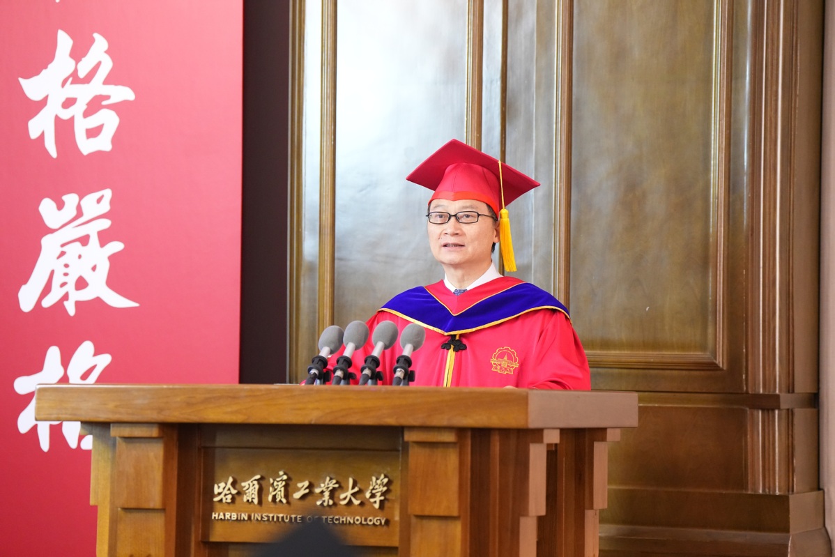 韩杰才代表学校向323名顺利完成学业的博士研究生表示祝贺。他指出,以“使命驱动、坚持真理、崇尚科学、追求卓越”为主要内涵的新时代哈工大“尖兵”文化,是永葆哈工大人特质的核心所在。“尖兵”既是每一个哈工大人在校园中追求卓越、干事创新的共同回忆,更是每一个哈工大人在与国同行征程上的价值共识、情感共识。当前,百年变局加速演进,我们正面临着一系列新命题、新挑战,这正是新时代的哈工大“尖兵”们回答“使命何为、真理何践、科学何探、卓越何求”的实践舞台。